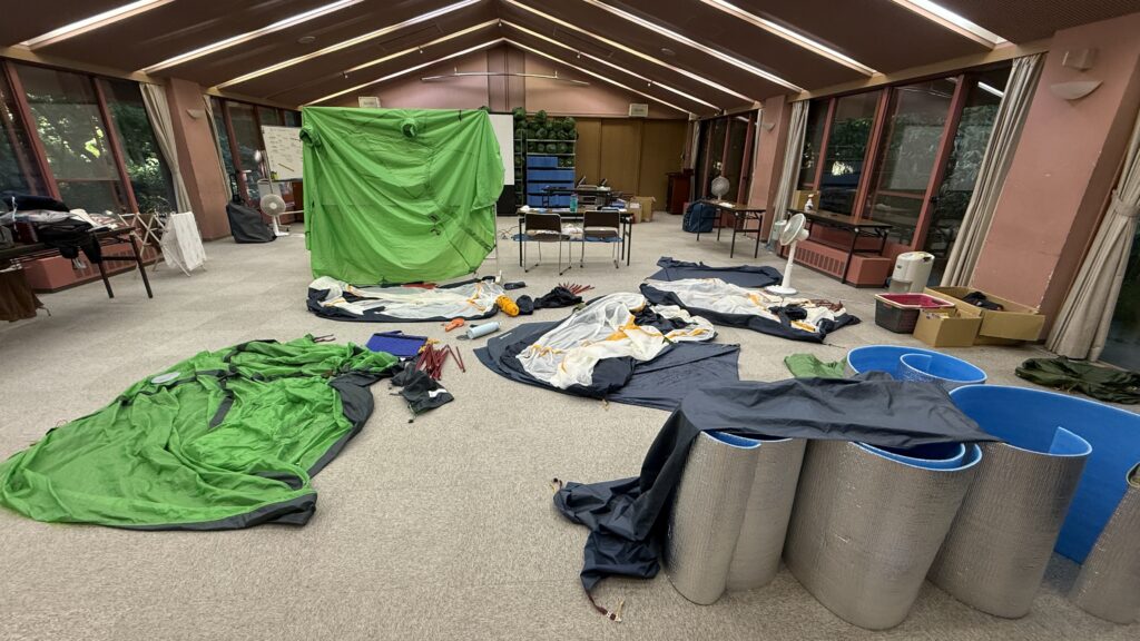 テントやスリーピングマット、寝袋、レインウェアー、バックパック、食器、調理器具等の装備は準備しています。以下の個人装備の準備が必要となります。